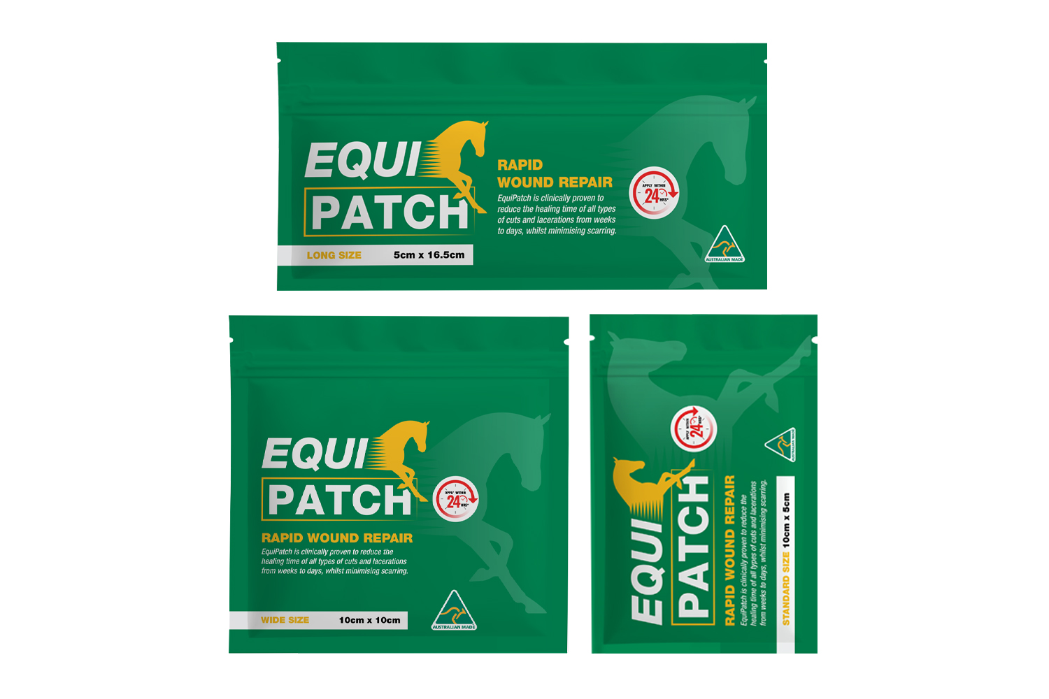 Keep EquiPatch in your equine first aid kit, ready to go in case of emergency. EquiPatch will not expire.